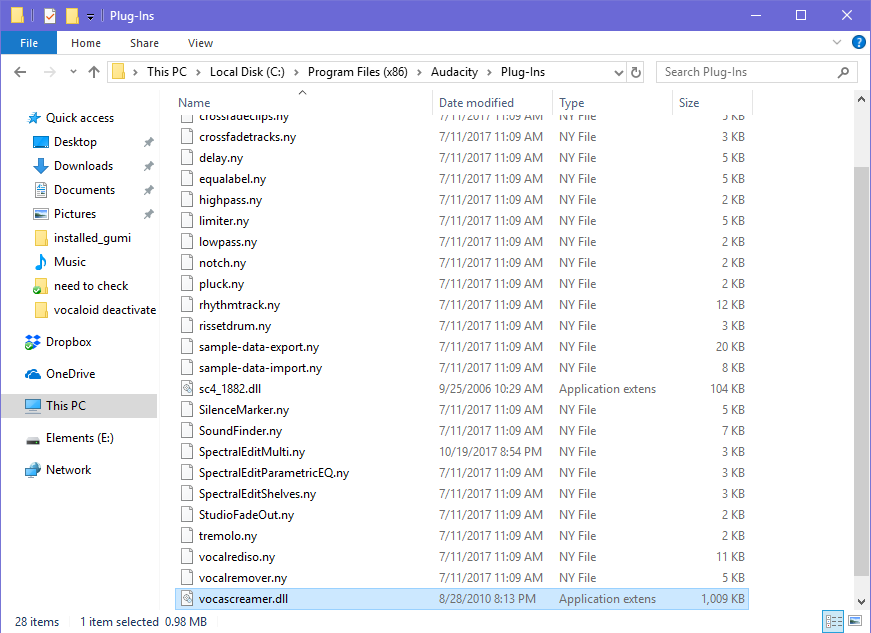 Step 2: Drag the unzipped VST file(s) (.dll) into Audacity’s Plug-Ins folder