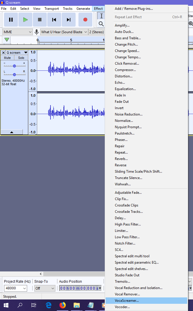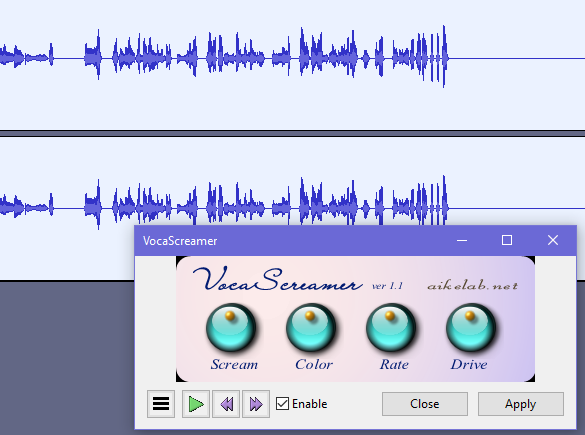 Open music file in Audacity > Effect > VocaScreamer