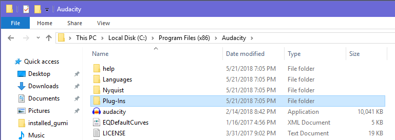 C: drive > Program Files (x86) > Audacity > Plug-Ins