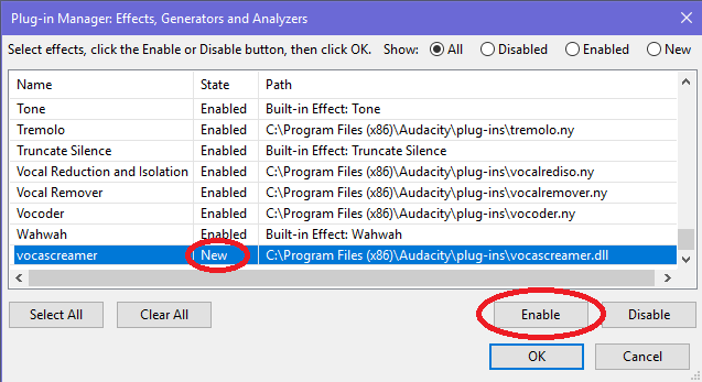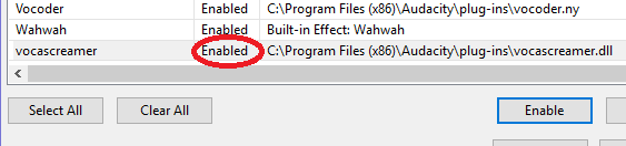 Step 3: Activate the plug-in(s) in Audacity
