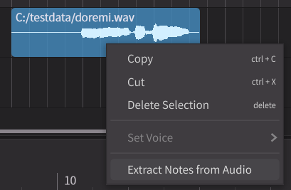 4. Import the vocals-only audio file of your song into Synthesizer V as an instrumental track. Right click the track and choose 'Extract Notes from Audio'. This option is not available in Synthesizer V 1 Studio Basic. If you are using SV1 Basic, use an alternative audio to midi converter available online, then import that midi into Synthesizer V.